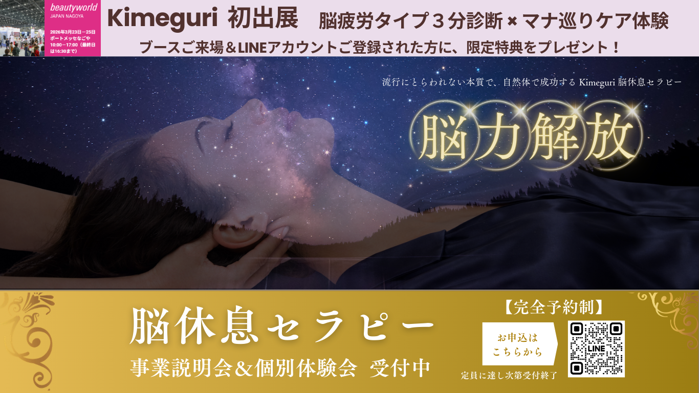 合同会社クローバーは、2026年3月23日(月)から開催される【ビューティーワールドジャパン名古屋】に初出展いたします! 今回のブースでは、 ・脳バランスタイプ3分診断・マナ巡りケア体験・脳休息セラピー事業説明会・個別体 […]